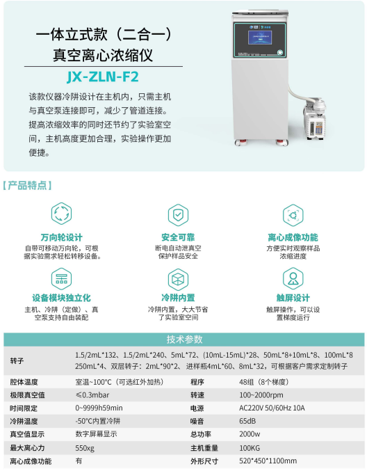 产品简介:一体立式真空离心浓缩仪(二合一),最大化节约空间(内置真空泵和冷阱集成化设计),该款仪器冷阱设计在主机内,只需主机与真空泵连接即可,减少了管道连接。提高浓缩效率的同时还节约了实验室空间,主机高度更加合理,实验操作更加便捷。