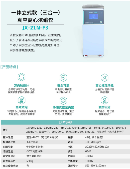产品简介:一体立式款(三合一)真空离心浓缩仪的冷阱、隔膜泵均设计在主机内,减少了管道连接。提高浓缩效率的同时还节约了实验室空间,主机高度更加合理,实验操作更加便捷。