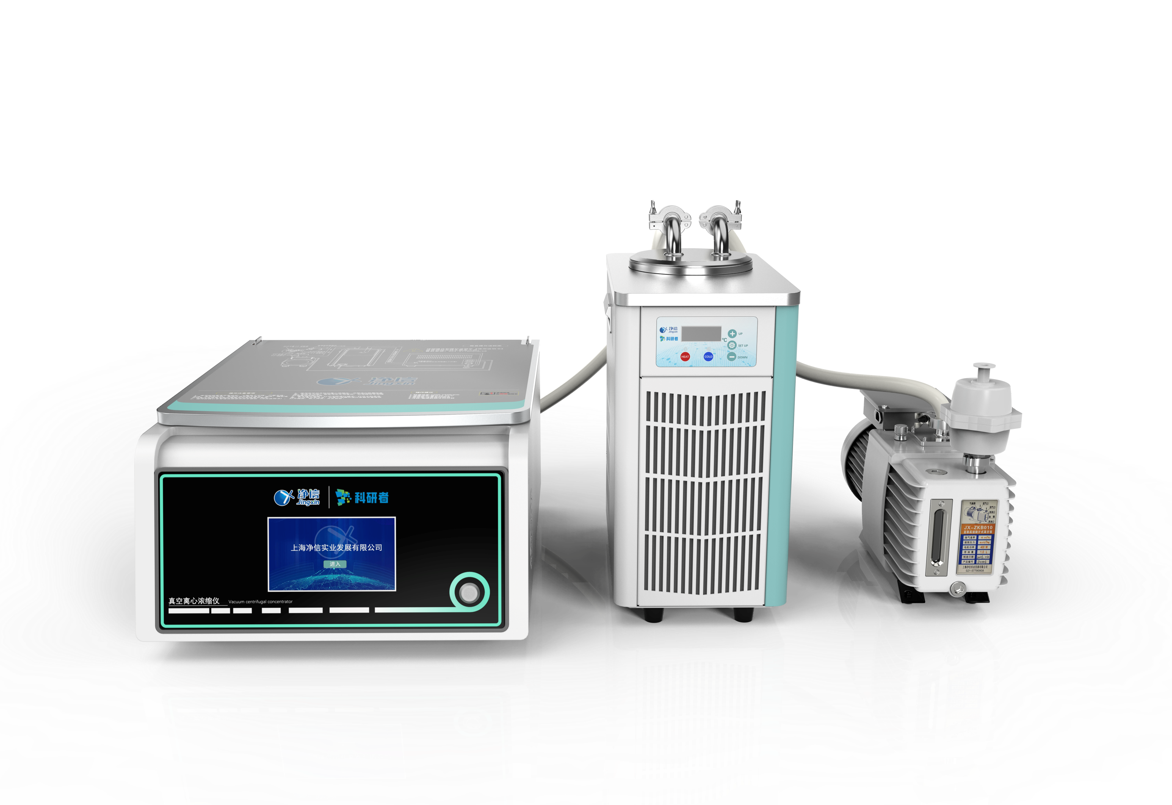 工作原理:通过抽真空将腔体内气压降低的方式来降低溶剂沸点,当压力降低时,溶液沸点随之降低,因此当压力降到一定程度时,溶液便开始沸腾;同时持续对样品进行离心,使溶液一直被收集在离心管底部,避免了溶液爆沸导致样品污染及损耗;溶剂蒸气在经过低温冷阱时液化,被冷阱捕获,可对保护真空泵进行保护,延长其使用寿命。此外样品始终处于一种低温和真空的环境,可以防止热敏感样品的失活和样品氧化。