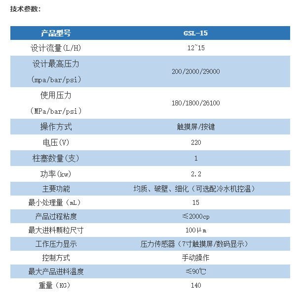 制药行业中制备脂肪粒、载药型乳液均质、脂质体、纳米混悬剂和微胶囊等;